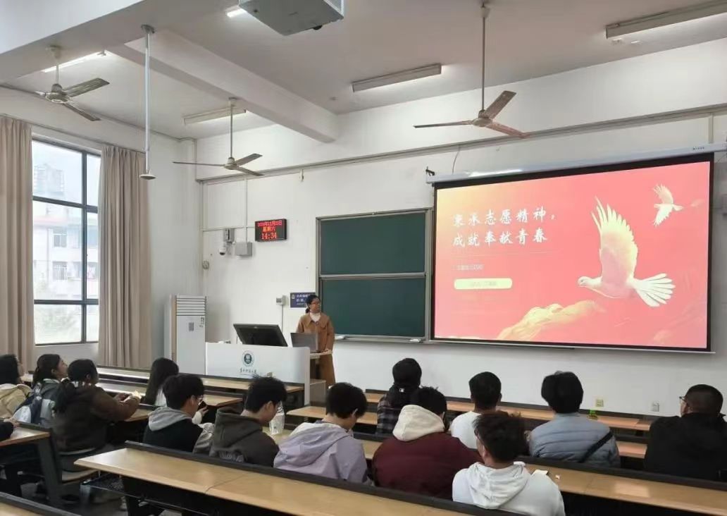 丁菲娅表示本次活动是为讲好志愿服务故事,强化青年志愿者荣誉感,增进同学们对志愿服务的感性认知。她以抗击新冠疫情期间无私奉献的志愿者群体为例,阐释志愿服务的关键意义,并带领同学们深入研习习近平总书记关于志愿服务的重要论述。同学们借此明晰了志愿者对社会的积极贡献,体会到了青年群体在志愿者队伍中所发挥的重要作用和突出价值。