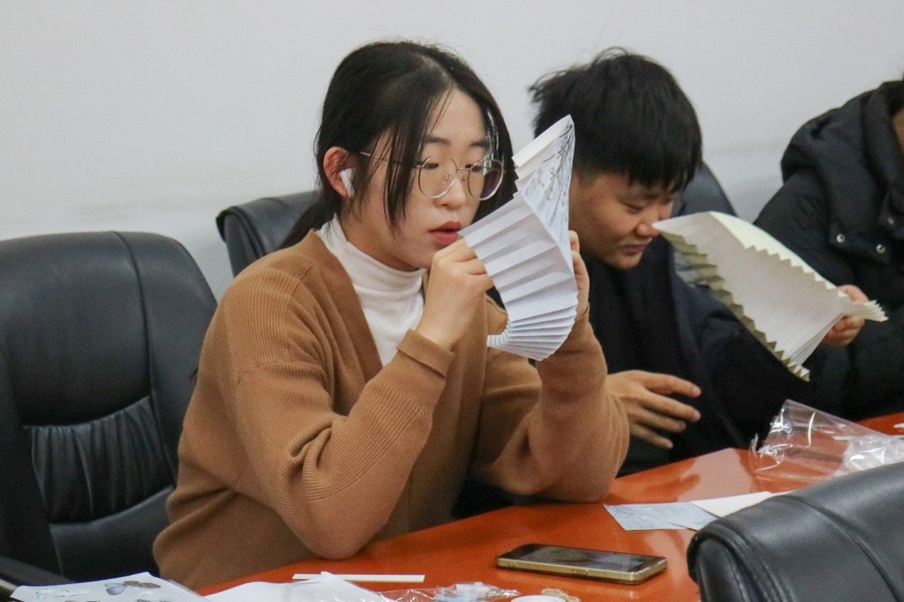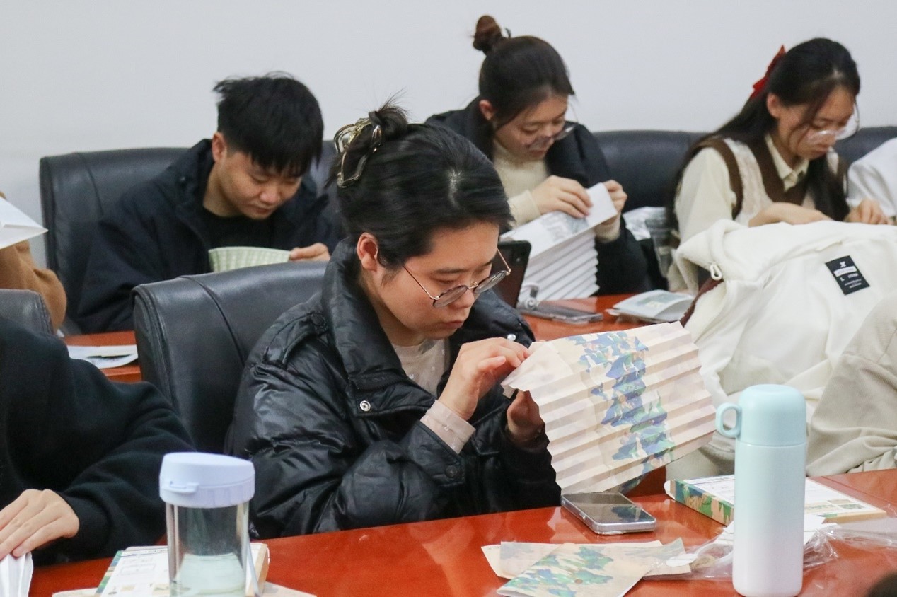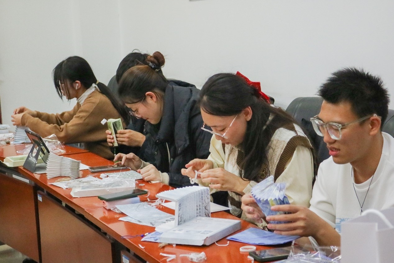 活动开始前,工作人员准备了制作纸书灯的材料包,以及一些小装饰来妆点大家的书灯,为大家详细介绍了纸书灯的制作步骤和技巧,从选材、设计到粘贴,每一步都讲解得细致入微。同学们认真聆听,积极动手,将一张张普通的纸张,通过巧妙的折叠和粘贴,变成了古香古色的纸书灯。