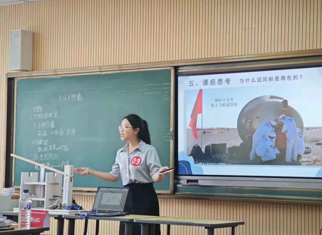 “最好的升华是沉淀自己”。在叶薷杨看来,作为一名师范生,不仅要加强专业课学习,还需要具备良好的教学技能。在大二,叶薷杨开始接触各种师范生技能比赛,尝试着站上讲台、命制试卷、制作微课,落实德智体美劳全方位的发展。这一年大大小小的比赛让她不断磨练,收获成长。在大二即将结束时,叶薷杨与队友们共同努力,制作出了集电磁学三个重要理论于一体的综合教具,并获得了第十四届全国“格致杯”物理自制教具的三等奖。“所有的困难都会给努力让道”,这一路的坚持,给了她一个肯定的答案。