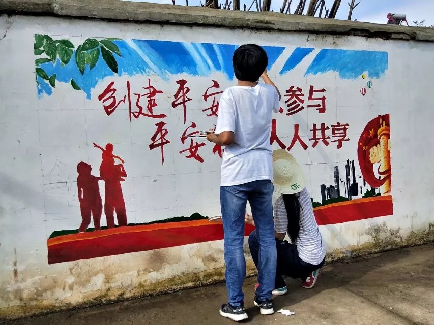 文明礼仪、伟大复兴中国梦、社会主义核心价值观、绿水青山就是金山银山……围绕以上主题,实践队队员们紧跟时代脉搏,反映社会主义先进文化,用画笔传递凝聚人民的精神力量,自2012年起为柳山湖镇绘制文化墙共计1700余平方米。