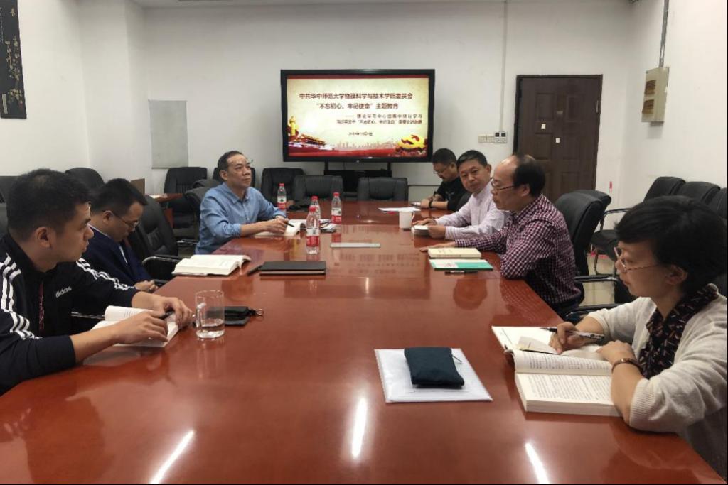 物理科学与技术学院中心组于2019年10月8日下午在9535会议室集中学习《习近平关于“不忘初心、牢记使命”重要论述选编》。本次集中学习由院党委书记张明生主持。