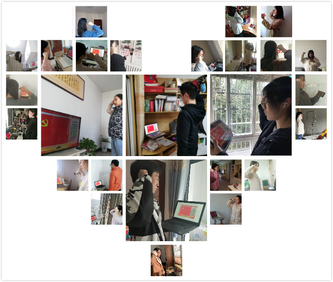 活动开始,重温入党誓词。虽然没有线下那样的统一组织,但每位同志在不同的地点,同一时间,将党旗投影在手机、电脑或电视屏幕上,举起右手,面对着党旗庄严宣誓。在这样的特殊时期,党员们用自己的行动,表达决心,做出承诺。