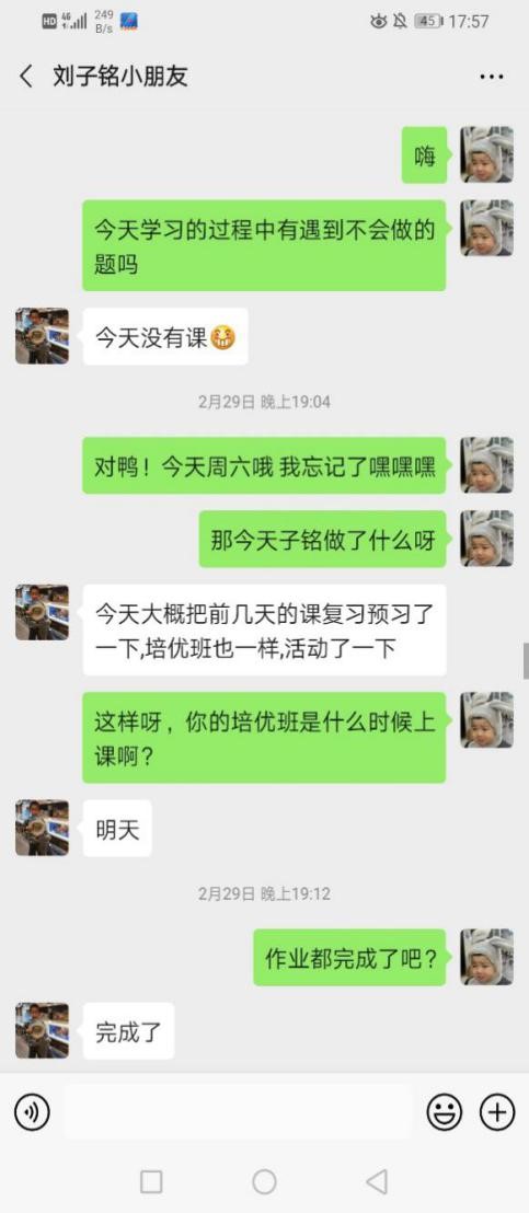 报名参加了由教育学院研究生党员主导的“教研之家研究生党员爱心助学团”,成为了仙桃市一名初三同学的线上辅导老师。为医护工作者提供力所能及的帮助,做他们的坚实后盾。