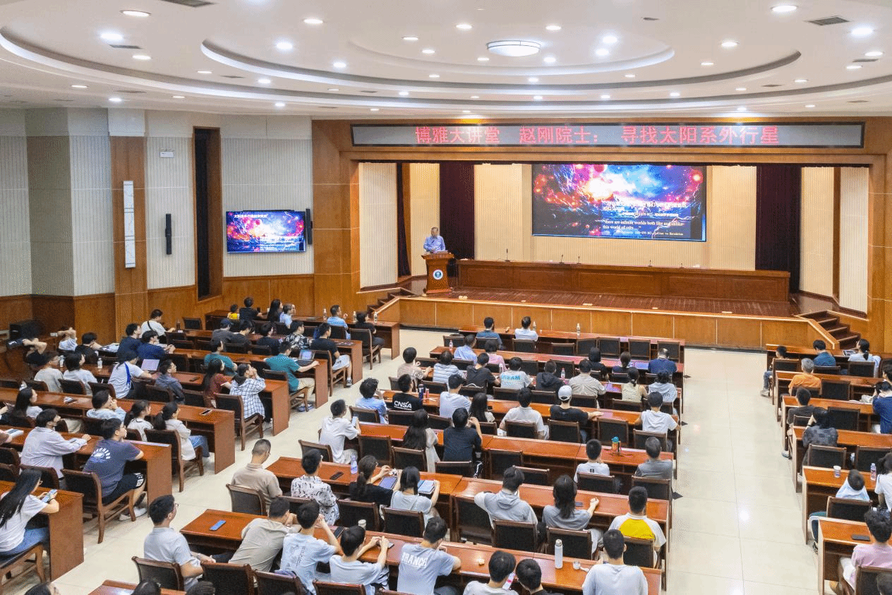 在提问环节,现场气氛热烈,同学们积极参与,围绕“宜居带内生命存在的可能性”“视向速度法所反映的行星参数含义”等话题与赵院士展开深入交流。有同学提出,当前搜寻多基于人类生命体征标准,是否会忽略硅基生命等其他形式的存在?对此,赵刚院士指出,现代天文观测采用多波段、多参数的综合探测手段,任何具有规律性的天文信号都有可能被科学仪器识别,不局限于碳基生命模型。
