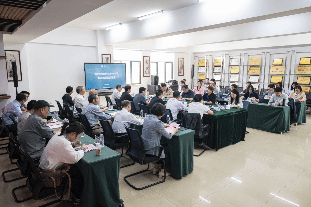 5月24日上午,物理学师范类专业第三级认证意见反馈会在九号楼551会议室举行。专家组全体成员,本科生院院长刘清堂、兄弟学院负责人、物理学院党政领导班子、教师代表参加会议。会议由专家组组长宋冬生主持。