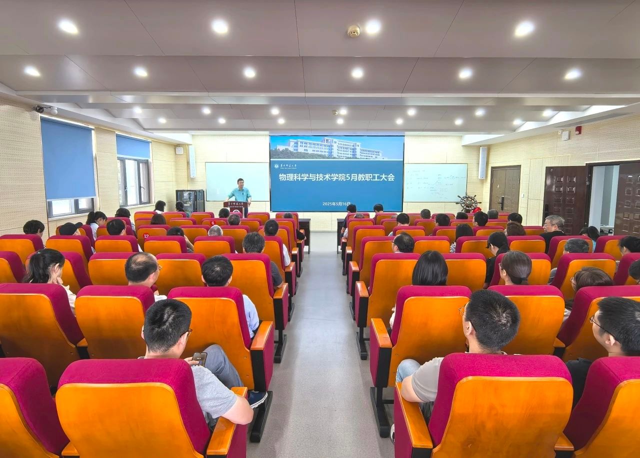 5月16日,物理学院召开全院教职工大会,部署5月学院重点工作。全体教职工参会,院党委书记金新利主持会议。