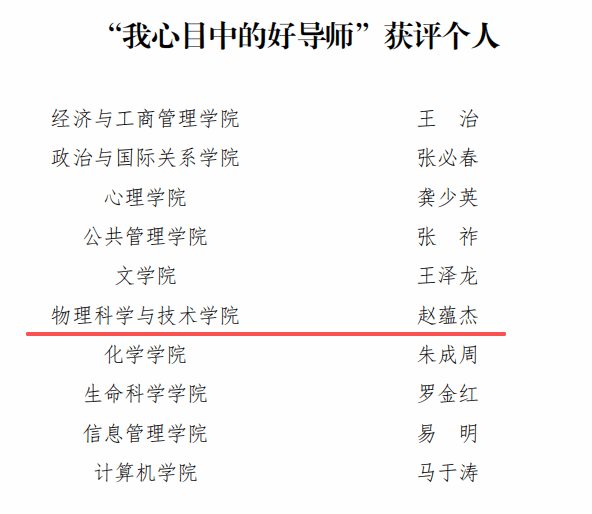此次赵蕴杰教授获评“我心目中的好导师”,既是对其立德树人成效和科研贡献的高度认可,也充分体现了物理科学与技术学院在导师队伍建设和研究生培养方面的显著成果。学院将继续加强师资队伍建设,优化育人环境,支持更多教师成为学生成长成才路上的引领者和同行者。