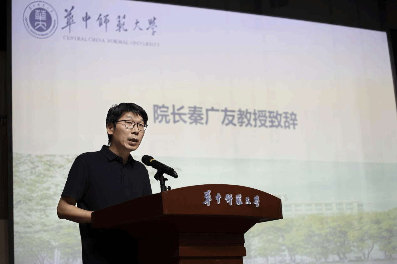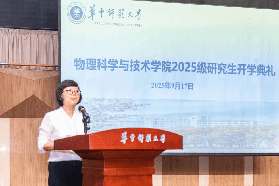学院院长秦广友致辞。他首先代表学院向全体2025级研究生新生表示诚挚祝贺与热烈欢迎,并向同学们介绍了学院的发展历史、学科优势及科研实力,生动展现出学院100多年来始终与国家命运同频共振的深厚情怀。“你们要成为教育强国建设的生力军,成为推动我国科技事业发展的中坚力量。”他强调,研究生不应止于被动应答课题,更要学会主动发问、定义问题,在探索中真正锤炼创新思维与科研能力。秦广友对新生提出三点殷切希望——坚定理想信念,锤炼过硬本领,涵养高尚品格。他相信,只要各位同学能够坚守初心、笃行不怠,就能在物理科学的星辰大海中找到属于自己的光芒,为中华民族伟大复兴贡献力量。