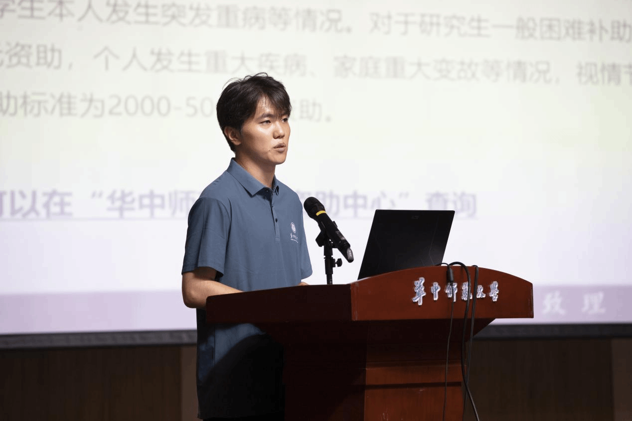 研究生入学教育环节,教学秘书卢畅围绕研究生培养方案与学位申请要求等关键事项,展开系统讲解。辅导员王润浩则介绍了学院研究生工作的主要内容,围绕日常管理、“三助一辅”岗位申请、奖助贷政策等方面,系统梳理了新生需要了解的核心事务,同时兼顾心理健康关怀等。他表示,学院一定全力做好服务保障,助力大家安心求学。