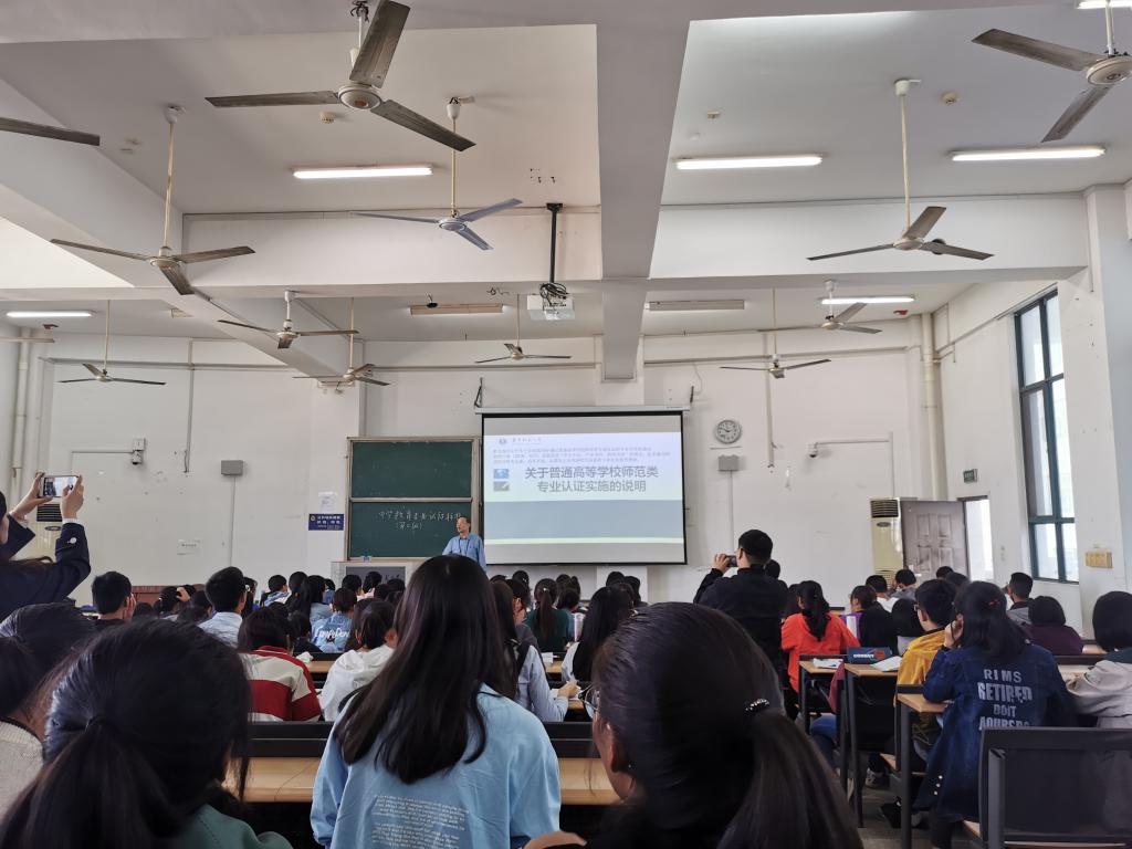 物理科学与技术学院讯(通讯员 潘姿杏)10月20日上午,物理科学与技术学院开展了普通高等学校师范类专业认证(二级)实施工作说明会。本次活动由学院副院长吴少平教授主讲,由2019级辅导员高玉茜老师主持,物理科学与技术学院2019级师范类专业全体学生参加了此次活动。