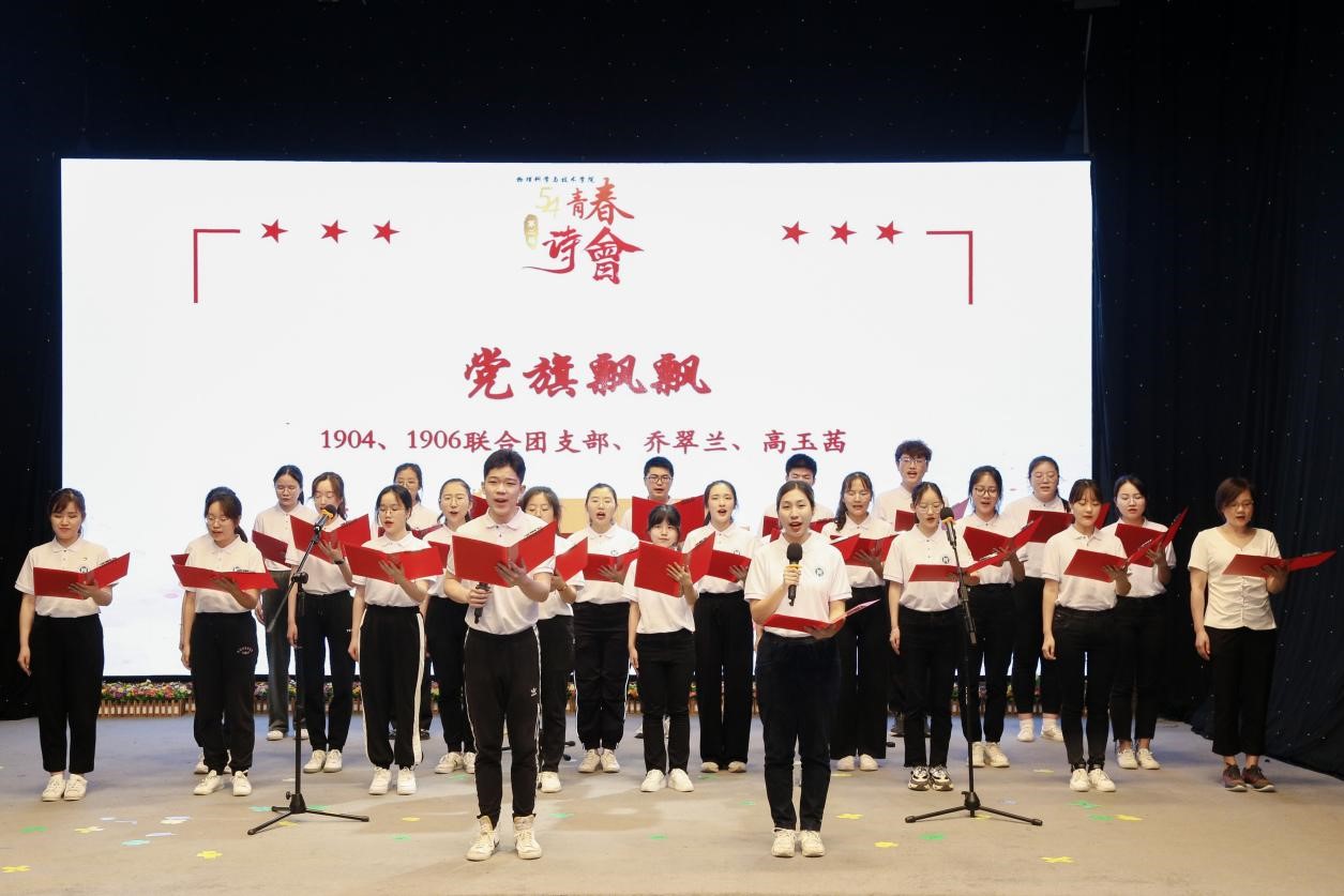 (1904、1906联合团支部、乔翠兰老师、高玉茜老师:《党旗飘飘》)