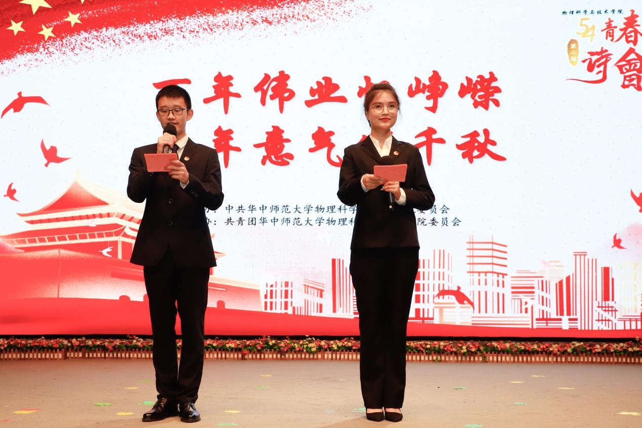 物理科学与技术学院讯(通讯员 要娅楠)5月23日下午,庆祝中国共产党成立100周年“百年伟业忆峥嵘•青年意气颂千秋”物理科学与技术学院第二届五四青春诗会于九号楼六楼演播厅举行。国家级普通话水平测试员申定羽、程秀莉、陈蓓和物理科学与技术学院副院长吴少平、校团委(学生)副书记崔嘉欣担任本次比赛的评委。联系学院本科生班团的中层领导干部校医院院长桂柯、校团委副书记胡余映等受邀参加演出。物理科学与技术学院党委书记张明生、副书记曹阳、副书记马英,各年级班主任和辅导员代表等出席本次活动。