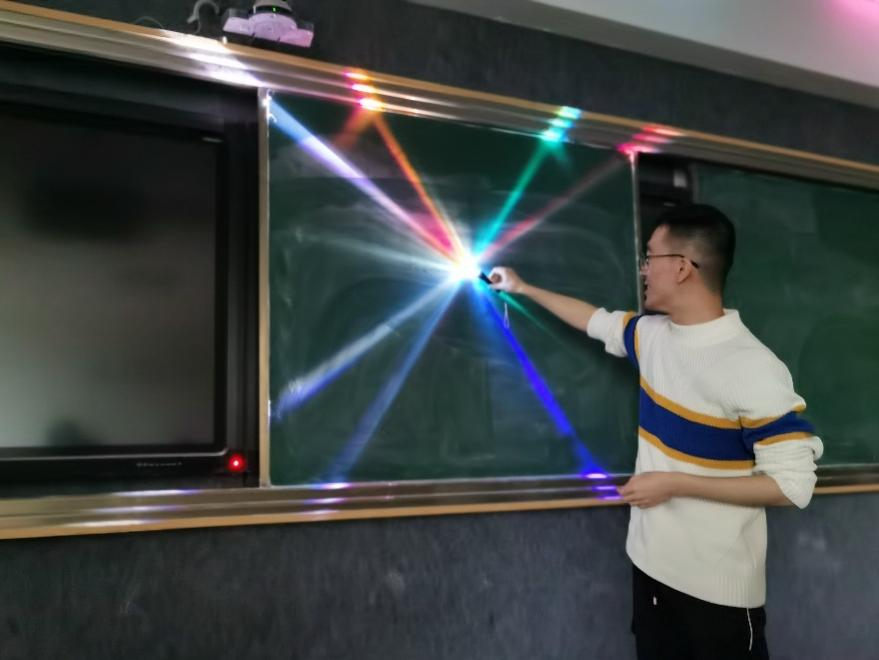 付朝在初赛中选择了《光的衍射》这一课题,可视性较强的光学实验是他课堂中的一大亮点。付朝表示,参加比赛需要熟悉相应教材以及课程标准,同时也要注意平时演示实验素材的积累。在模拟授课中,自己的课堂结构不清晰。在黄致新老师和冯秀梅老师的指导下,自己完善了语言表达,改进了演示文档,使整个教学逻辑更加清晰。同时本次比赛准备时间也比较紧张,这也需要合理规划安排。
