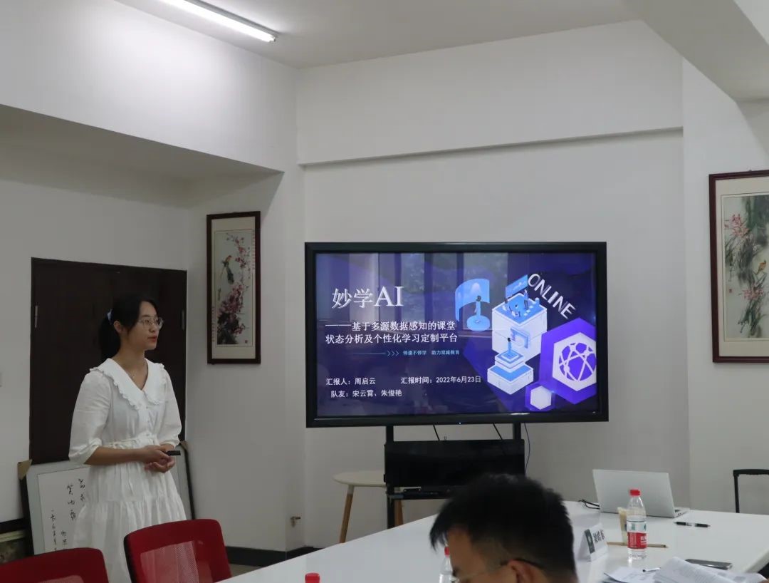 在各分会场,参赛队伍根据抽签顺序,分别进行团队介绍、作品汇报、现场演示、评委问答等答辩环节。其中技术赛项目团队从创新性、实用性、应用场景设置等方面对自己的作品进行展示,商业赛项目团队则更侧重项目的背景及意义、项目创新点、市场分析以及营销策略等方面。评委们也为参赛作品一一提出修改完善意见并评分。最终,4支队伍荣获一等奖、7支队伍获二等奖、10支队伍获三等奖。