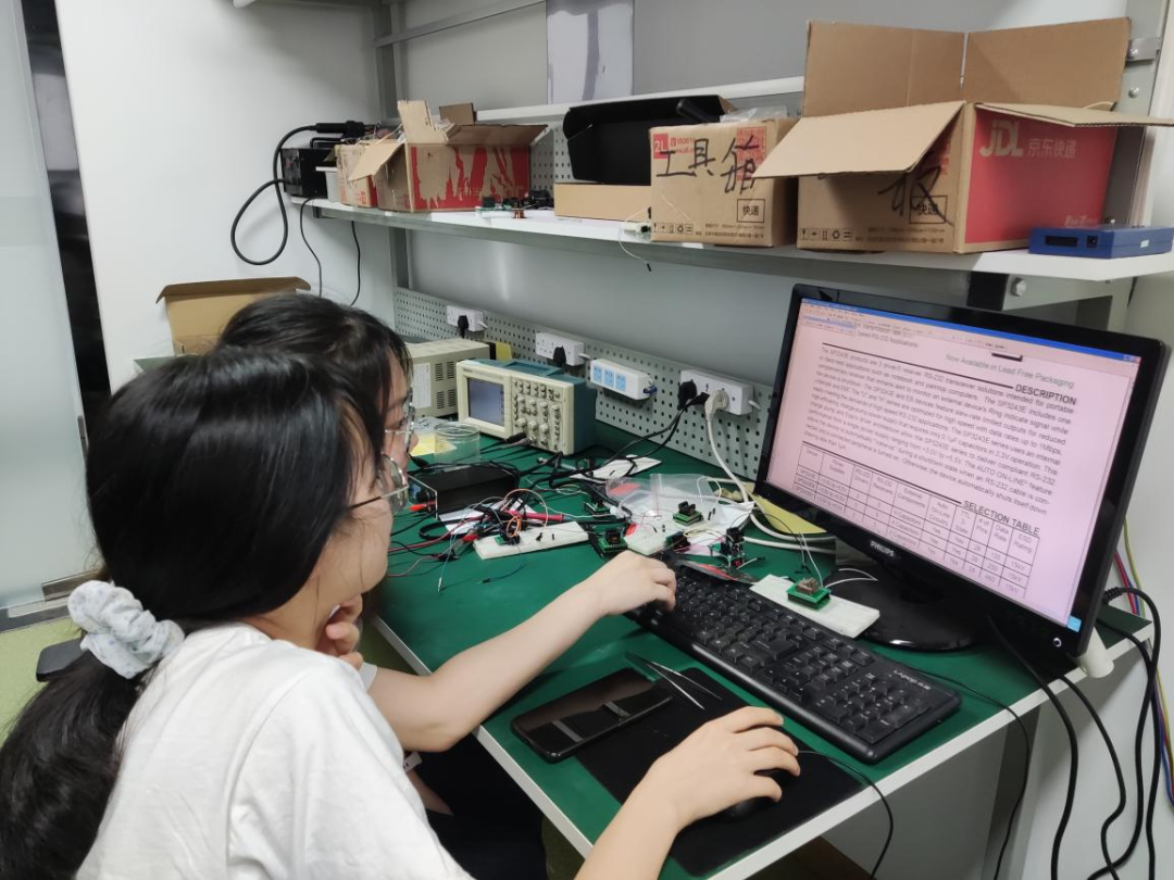 6月27日,在罗小巧老师的带领下,以胡钰洁为实习组长的8名本科生前往武汉芯景科技有限公司开展实习活动。该组实习内容包括提电路图、翻译、测试等,8名同学各司其职,表示将努力完成各项工作。第一天的实习结束后,胡钰洁说道:“在前辈的指导下,我们学习了如何识别场效应管及看图识电路等知识,掌握了一些基本的绘图方法步骤和提图思想,学会了通过栅源漏判断电路输入输出端口等。第一天的实习感觉非常充实,学到不少知识,与同学之间的沟通交流也加强了。”