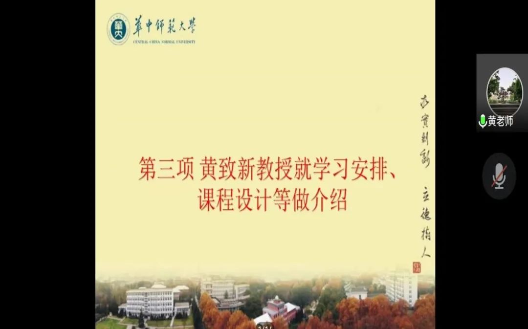 物理教育研究所所长黄致新教授提醒同学们珍惜学习机会,并依次对研究生阶段的课程学习、毕业论文撰写、课程考核方式等作出了指导。希望同学们通过学习形成完善的知识体系结构、掌握相关研究方法并熟悉研究前沿、实现理论与实践的结合。