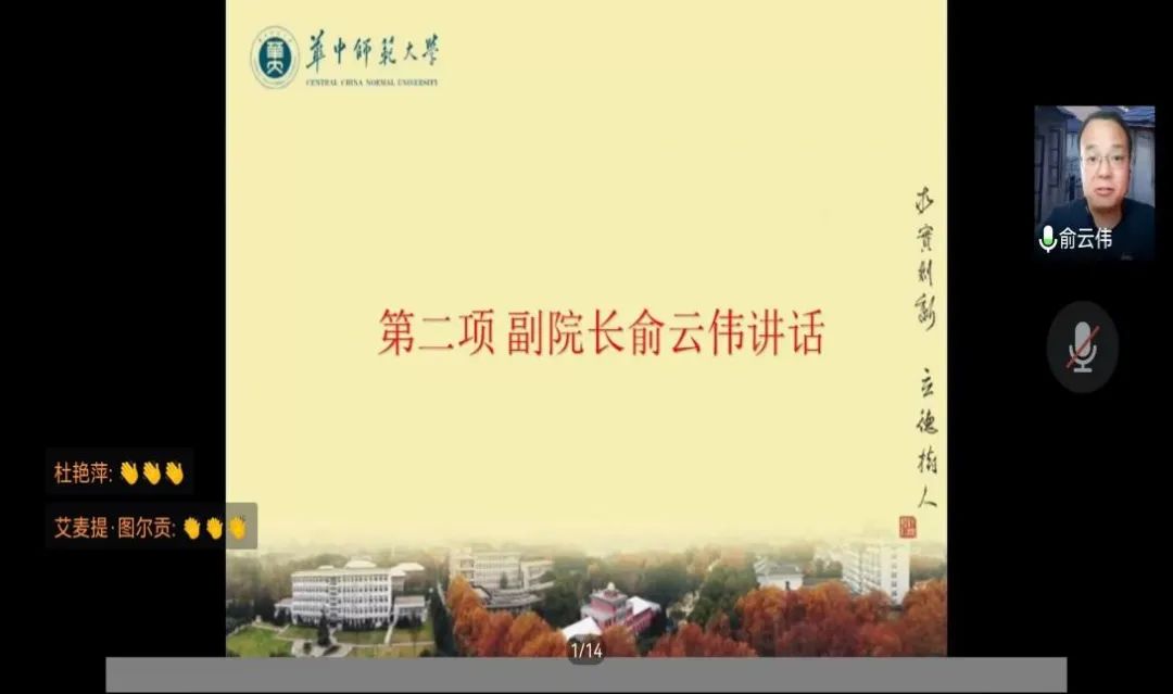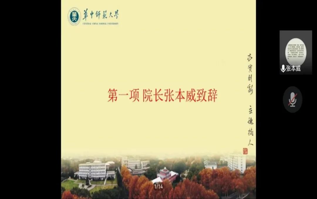 (通讯员 周雨瑾)2022年7月15日上午9点,华中师范大学物理与科学技术学院在线举行了2022年公费师范生教育硕士开学典礼。学院院长张本威教授、副院长俞云伟教授、物理教育研究所所长黄致新教授、副所长冯秀梅副教授、研究生教学秘书葛镜、研究生辅导员王秋革出席开班典礼。全体2022级公费师范生教育硕士参加典礼,典礼由研究生辅导员王秋革老师主持。