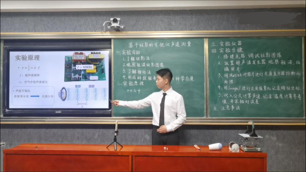 参加本次比赛的2019级本科生袁泉同学表示:“在往届比赛当中,看到18级学长王泳涵和本年级同学熊泽坤均在比赛中获奖,很崇拜他们,于是自己也参加比赛。讲课比赛并不是把大学物理实验课程中的实验原原本本讲一遍。要让评委眼前一亮,就必须挖掘实验的创新点,而这也恰恰是最艰难的一点。没有现成的实验仪器,就自己网购搭建。一开始我们用超声波清洗水槽用的振子当作超声波发生器,实验现象出不来。绝望,想要放弃,最终换用更昂贵的阵列式声场发生器后我们看见了超声驻波的纹影图像。那天下午,喜悦在整个实验室洋溢。一次次磨课,一遍遍尝试,那些不起波澜的日复一日终于在最后一刻让我看到了坚持的意义。我收获的不仅仅是一张奖状,更有老师们耐心、专业的指导以及与组员在实验室互帮互助的奋斗岁月中建立的深厚友谊。”