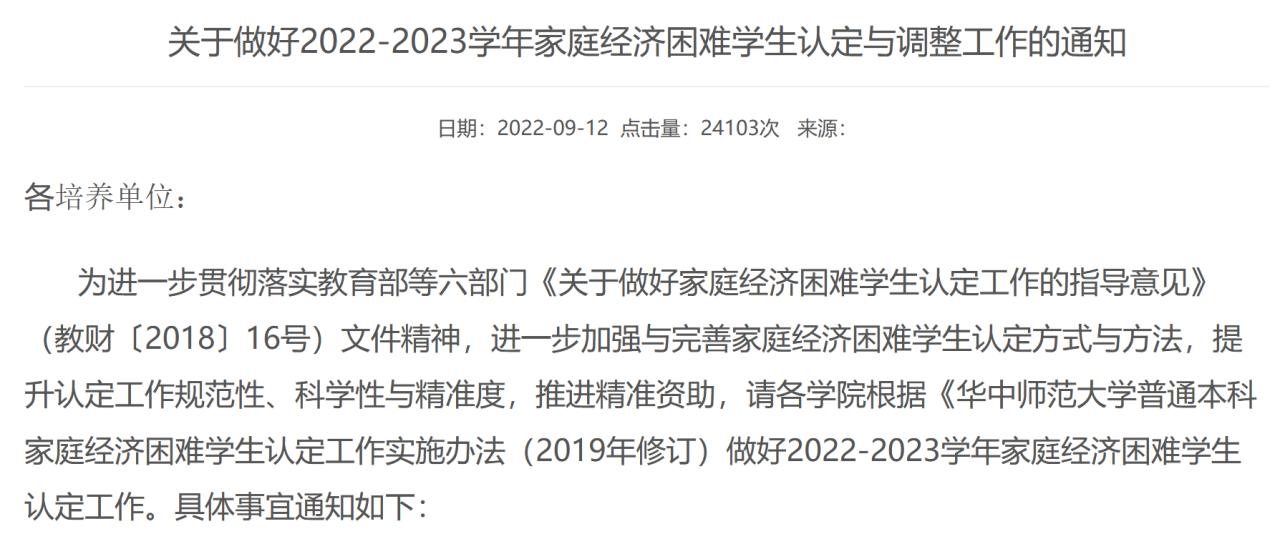 为进一步贯彻落实教育部等六部门《关于做好家庭经济困难学生认定工作的指导意见》文件精神,学校发布关于做好2022-2023学年家庭经济困难学生认定与调整工作的通知。学院按照相关工作要求,并结合实际情况,经过自主申请、民主评议、学院审核公示等流程,最终确定在全体本科生总评定特别困难144人,困难129人,一般困难48人。