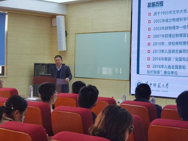 胡中波在欢迎辞中介绍了华中师范大学悠久的办学历史、完备的人才培养体系、雄厚的师资队伍力量和显著的学科建设成效,对同学们选择华中师范大学物理学院参加“英才计划”活动表示热烈欢迎。