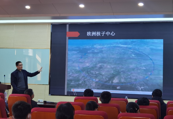 张明生介绍了物理学院弦歌百年的发展历程及学科建设近况。通过介绍,同学们了解了核物理学科的重大前沿研究领域:夸克物质理论和实验研究。物理学院建有夸克与轻子物理教育部重点实验室,从上世纪八十年代起,实验室先后加入欧洲CERN/LHC-ALICE、美国BNL/RHIC-STAR、德国GSI/ FAIR-CBM、北京BES-III、CERN/LHCb、俄罗斯DUBNA/NICA-MPD、兰州CSR-CEE,以及美国EiC和中国EICC等大型实验国际合作组开展合作研究,与10余个国家的20多个研究机构签订合作协议,是欧洲核子研究中心LHC-ALICE以及德国反质子与离子大科学装置FAIR-CBM国际合作组的中方牵头单位。