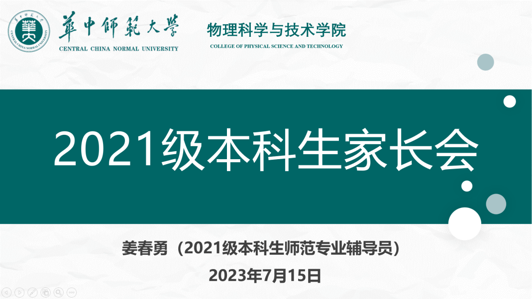 2021级师范专业辅导员姜春勇从一学期以来的工作重点进行总结,结合具体案例和详实的数据,就本学期教学内容和学业成绩进行交流,并给予针对性的建议。姜春勇从专业基本情况、班团建设情况和学风引领情况三个方面,带领家长们全面深入地了解学生的成长经历和丰富的校园生活。围绕心理健康工作和资助育人工作,帮助家长们进一步了解学院“以生为本”的理念。非师范辅导员刘琦在总结学期工作的基础上,强调暑假在学习学业、日常安全、心态调整、生活习惯等方面,学生需继续加强培养和锻炼的必要性,提醒家长履行监督责任。