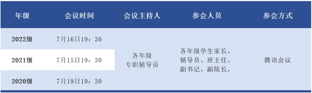 7月15日-19日,物理学院通过线上会议方式陆续开展本科生各年级家长会,学院1000余名学生家长参加会议。家长会由各年级专职辅导员主持,学院副院长吴少平和党委副书记马英参会,并分年级就学期工作总结及下学期工作展望同家长们做交流。本次家长会在各年级家长们中产生良好反响,普遍认为家长会帮助家长全面细致地了解了学校和学院工作,为下一步家长如何发挥作用、家校合力促进学生健康发展提供了方向指引。