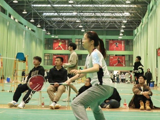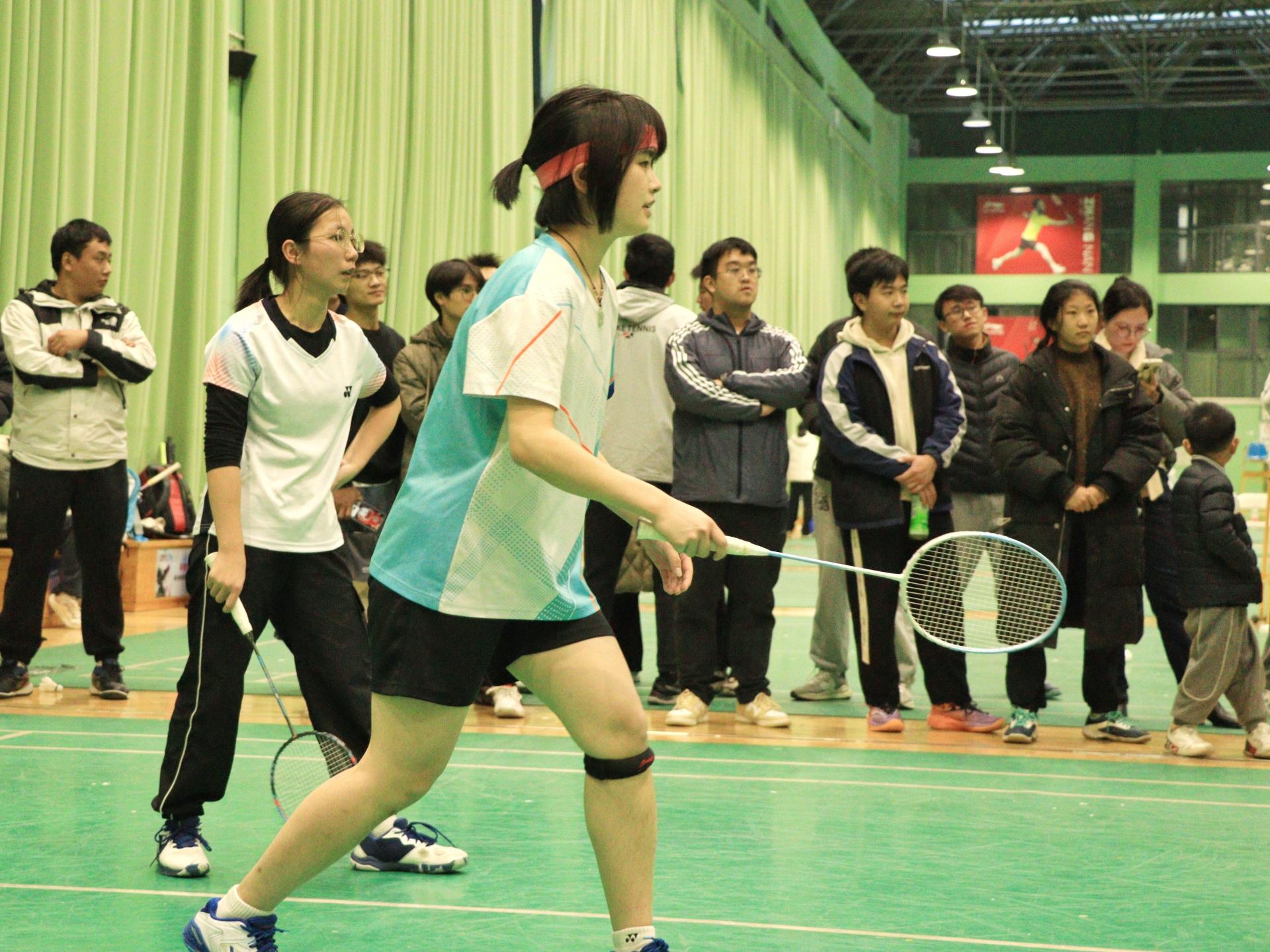 最后的女双比赛由队员韦锦卉与张玉涵代表物院出场。两位队员拼尽全力,战至最后一刻,展现了坚持不懈、永不言弃的体育精神。