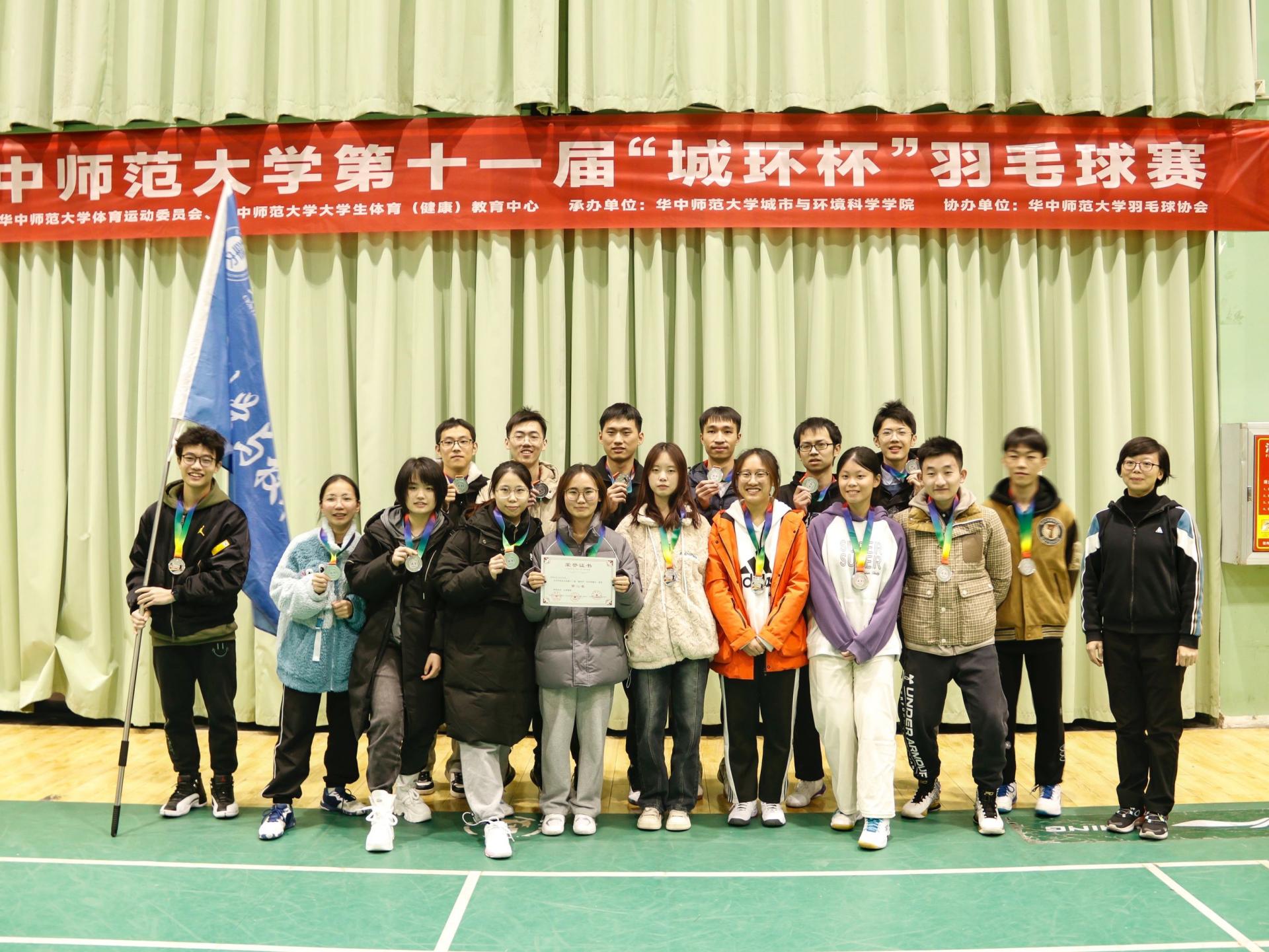 华中师范大学第十一届“城环杯”羽毛球赛于12月1日-3日在乒羽中心举行。在本届比赛中,我院羽毛球队发挥出色,配合默契,经过不懈努力,最终夺得亚军,并获评体育道德风尚奖,创学院近年来最好成绩。