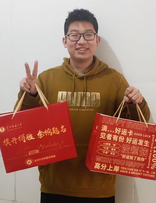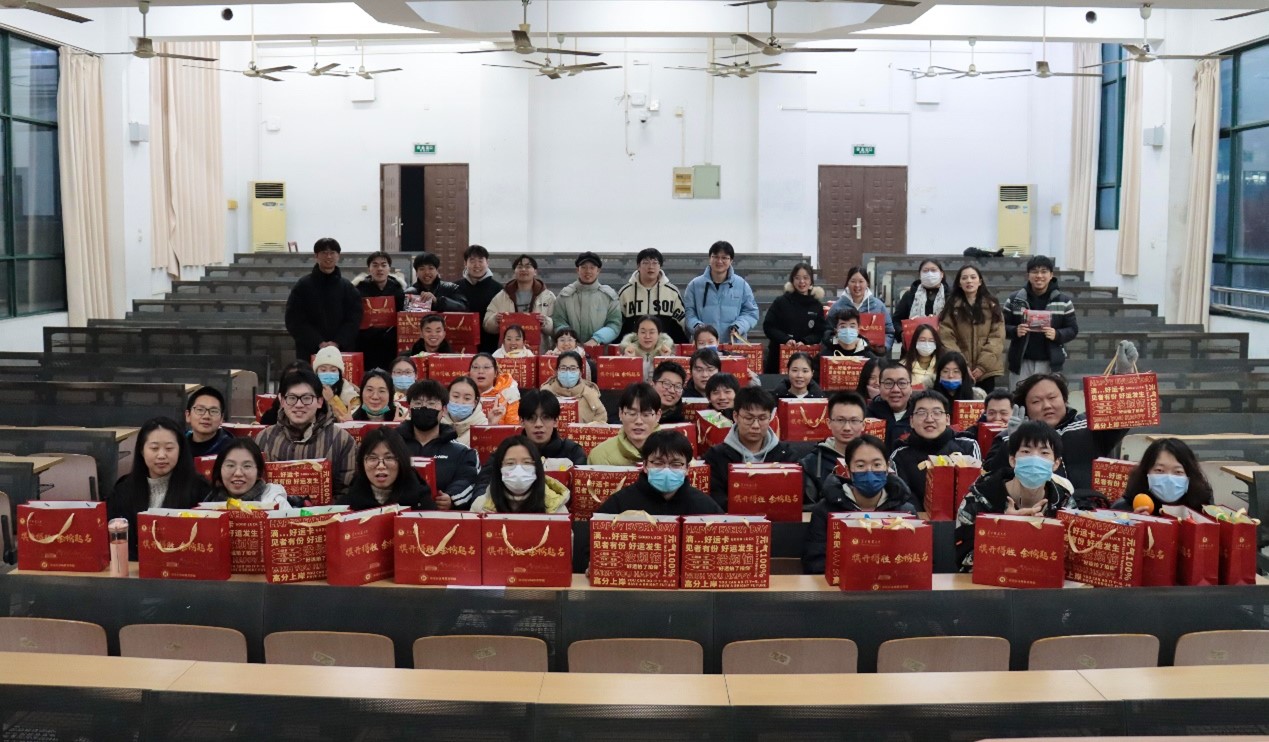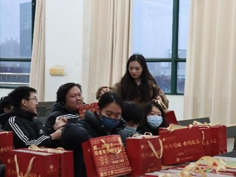 活动最后,辅导员老师和学生干部为考研学子分发满载学院领导、老师们和学弟学妹们暖心祝福的大礼包,每人两份,礼包×2,好事成双!