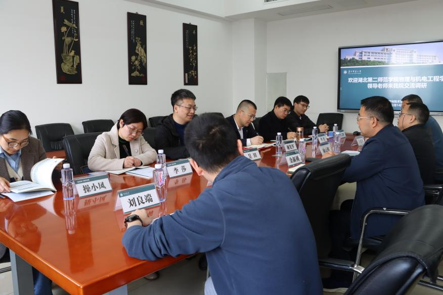 3月14日,湖北第二师范学院物理与机电工程学院党委书记吴田、院长李莎、副书记陈扬等一行来我院调研交流,学院党委书记金新利、副院长吴少平、俞云伟等参加座谈会。