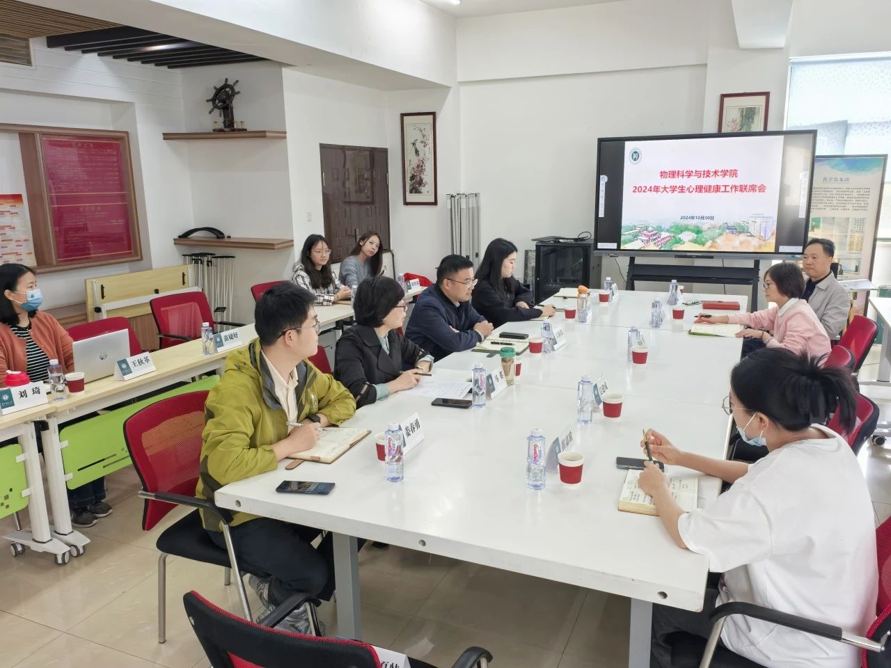 10月30日上午,物理学院2024年大学生心理健康工作联席会在9551会议室召开。学工部副部长吴建成、校医院副院长王红、心理健康教育中心吴才智教授受邀参加了会议。学院党委书记金新利、党委副书记马英以及本研全体专兼职辅导员出席了会议。会议由马英主持。