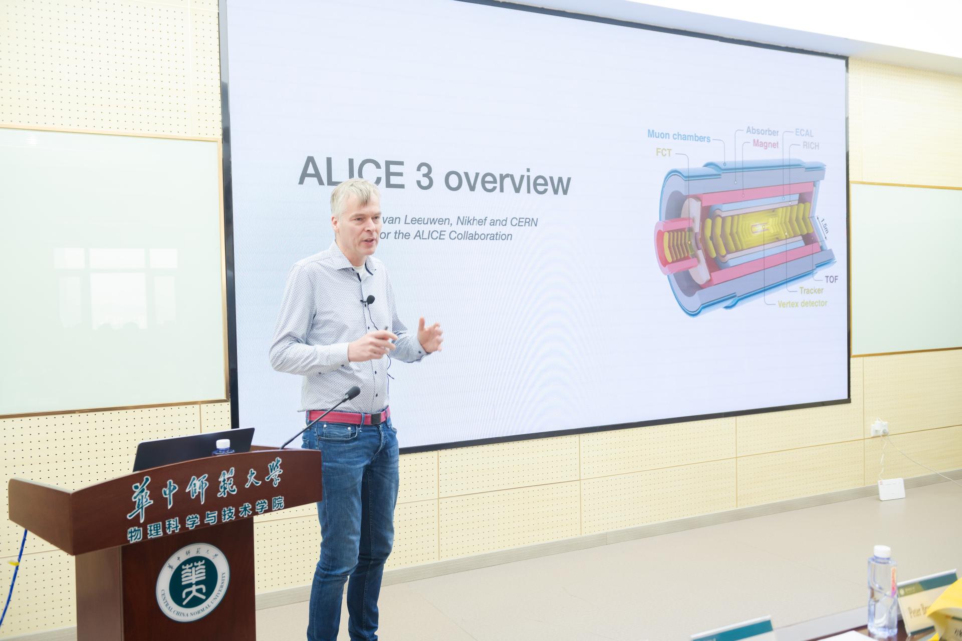 荷兰著名物理学家、欧洲核子研究中心CERN大型强子对撞机LHC实验ALICE国际合作组发言人Marco Van Leeuwen教授,国际著名硅像素技术专家、ALICE合作组前任发言人Luciano Musa教授,ALICE实验合作组技术委员会主席Werner Riegler教授,国际著名核物理学家、赫姆赫兹研究中心GSI资深教授、欧洲科学院院士、我校“桂质廷”讲席教授Peter Braun-Munzinger,德国海德堡大学讲席教授、德国科学院院士Johanna Stachel,以及来自国内高校和研究机构的粒子探测与快电子学技术和硅像素技术领域的专家:华中师范大学殷中宝教授和孙响明教授、中国科学技术大学刘衍文教授、复旦大学大学何艳兵教授、高能物理研究所梁志军研究员、近代物理研究所赵承熙研究员、原子能研究院李笑梅研究员等,分别就大型离子对撞机实验第三代全新探测器研制方案、物理目标、硅像素探测技术国际合作、中国参与和贡献等,展开充分交流和深入讨论,在关键技术领域的合作达成共识。本次会对推动我校参与具有全新理念的ALICE第三代大型探测装置研发国际合作起到重要推动作用,扩大了我校在高能核物理领域的国际知名度和影响力。
