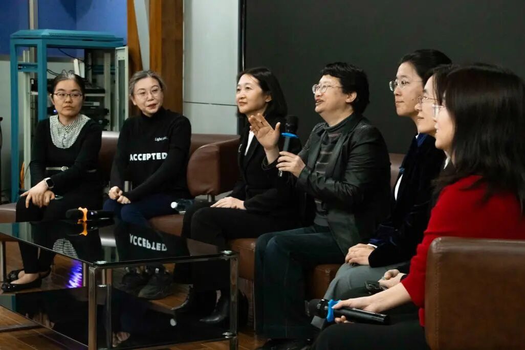 报告落幕,互动环节热情不减。七位女物理学家与师生围坐交流,氛围热烈温馨,她们将“她力量”化作细腻建议,娓娓道来。面对学子提出的“量子计算平台如何选择”“跨领域研究难在哪”等实际困惑,她们没有空谈理论,而是结合从起步到深耕的科研经历耐心解答。