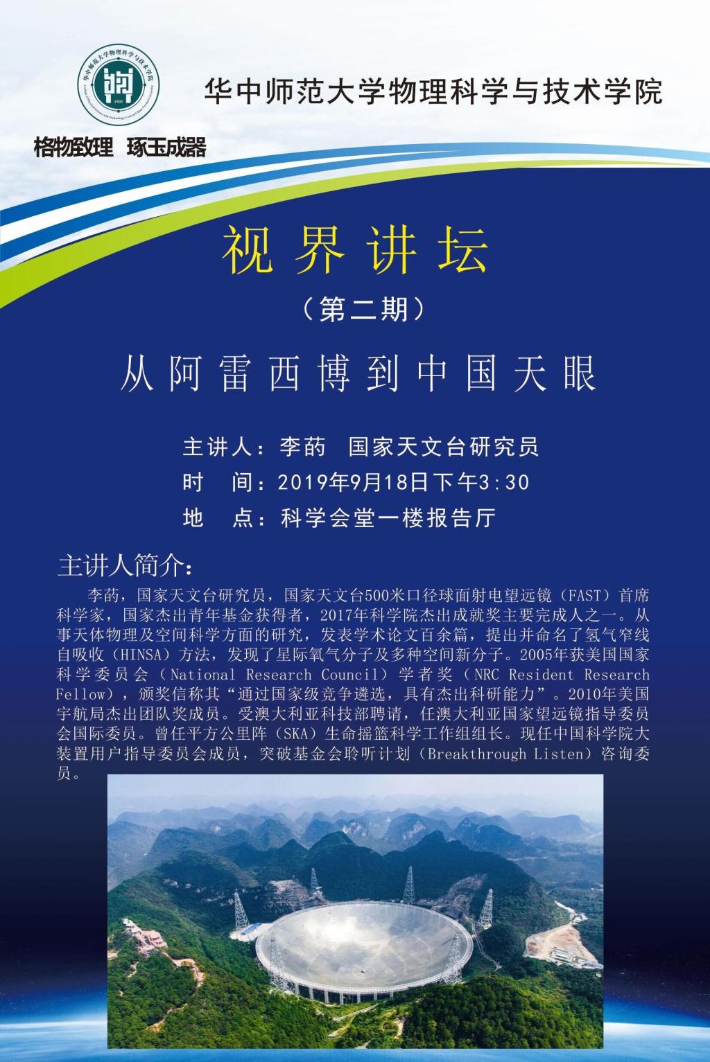 讲座摘要:射电天文学的高速发展与高新技术的紧密结合,催生了20世纪四大天文发现,以及超过6项诺贝尔物理学奖。20世纪科学工程的奇迹之一是阿雷西博望远镜,占据绝对接收面积的制高点超过半个世纪。2016年底,中国天眼FAST建成出光,取代阿雷西博成为世界最大的天线。2017年10月10号,FAST公布了第一批天文发现:6颗新脉冲星。迄今,FAST已经发现超过百颗脉冲星,开启了中国射电望远镜系统原创发现的新时代。FAST的建设得益于中国史无前例的基建投入,也是中国科学技术历史性发展的组成部分。我们正在准备两个FAST巡天计划,预期发现超过千颗脉冲星,几十万个气体星系,上百亿三维像素点的原子氢气天图。这些巡天计划的完成将使中国射电天文学家有机会在相关领域开展领先、原创的科学研究。
