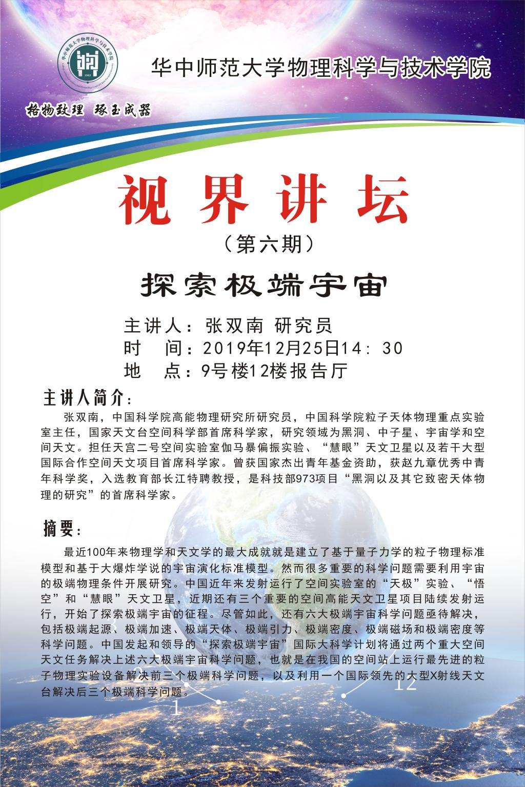 最近100年来物理学和天文学的最大成就就是建立了基于量子力学的粒子物理标准模型和基于大爆炸学说的宇宙演化标准模型。然而很多重要的科学问题需要利用宇宙的极端物理条件开展研究。中国近年来发射运行了空间实验室的“天极”实验、“悟空”和“慧眼”天文卫星,近期还有三个重要的空间高能天文卫星项目陆续发射运行,开始了探索极端宇宙的征程。尽管如此,还有六大极端宇宙科学问题亟待解决,包括极端起源、极端加速、极端天体、极端引力、极端密度、极端磁场和极端密度等科学问题。中国发起和领导的“探索极端宇宙”国际大科学计划将通过两个重大空间天文任务解决上述六大极端宇宙科学问题,也就是在我国的空间站上运行最先进的粒子物理实验设备解决前三个极端科学问题,以及利用一个国际领先的大型X射线天文台解决后三个极端科学问题。