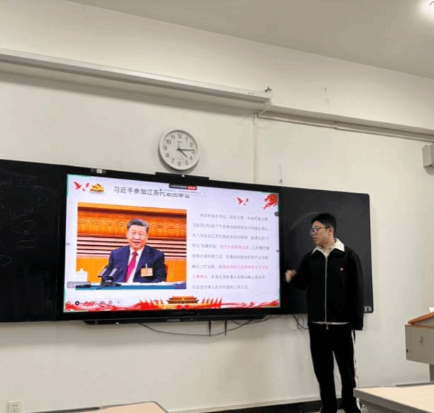 在主题学习环节,支部成员熊泽坤同志作为本期领学人,系统领学了贯彻习近平总书记重要讲话和2025年全国两会精神。全体党员同志结合总书记在江苏代表团审议时的重要讲话,围绕教育现代化、科技创新等重要议题展开了深入研讨。特别是对总书记在看望民盟民进教育界委员时提出的“必须深刻把握中国式现代化对教育、科技、人才的需求,强化教育对科技和人才的支撑作用”,大家都纷纷结合学科特点和亲身经历进行思考和讨论,现场思想火花竞相迸发。