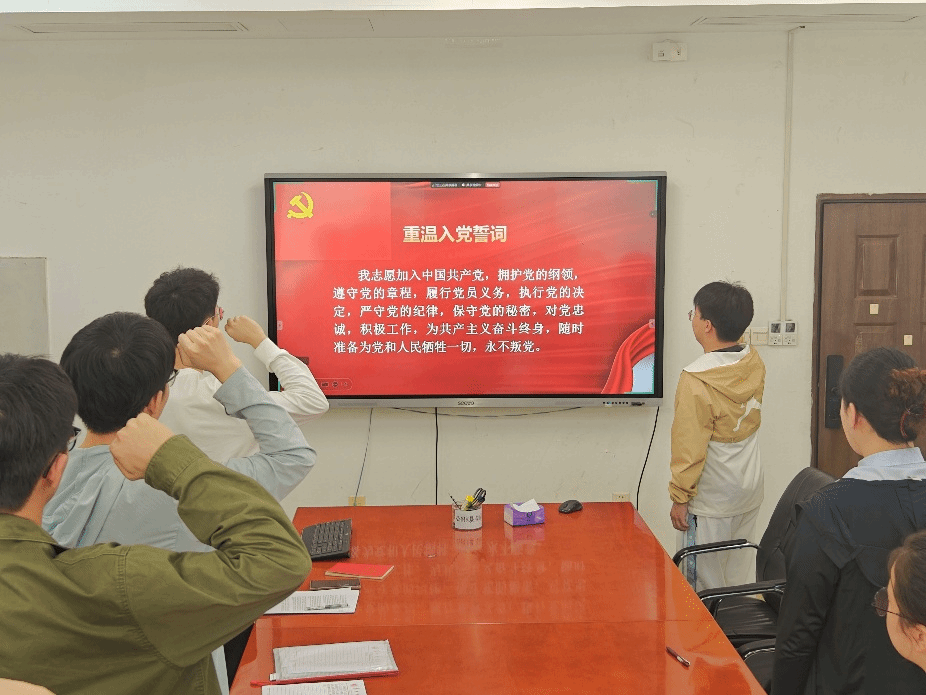 活动由张益荣同志主持。支部同志首先重温了入党誓词,共同铭记入党初心,领悟党员的使命担当。