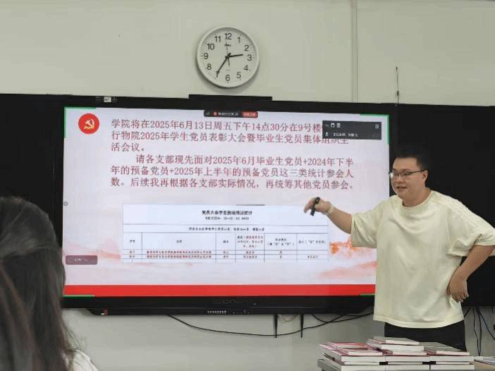 宣誓仪式结束后,支部组织开展了毕业生党员专题教育培训。会上,党支部副书记杜文帝详细介绍了毕业生党员组织关系转接工作的具体流程和注意事项,重点讲解了三种常见情况的处理方式,确保支部毕业生党员“离校不离党,流动不流失”。