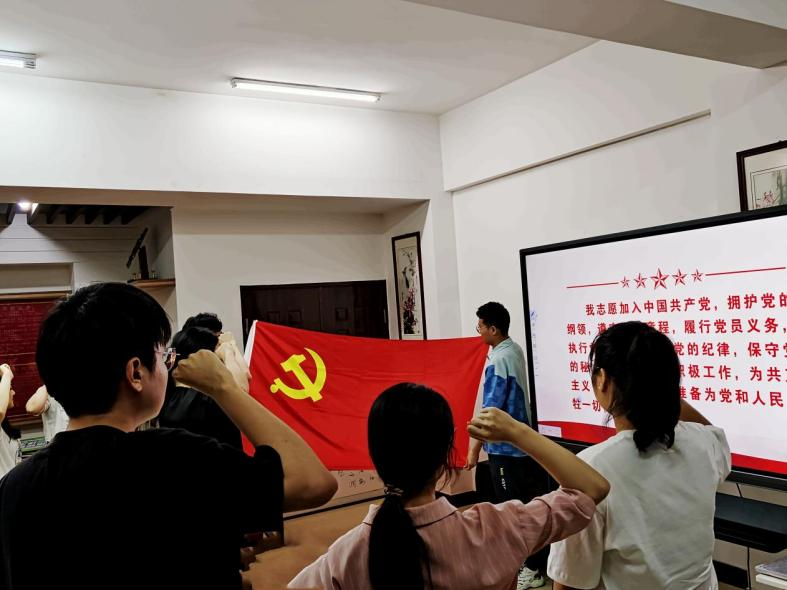 初心易得,始终难守。为让毕业生党员铭记历史使命,在新的道路上不忘初心、砥砺前行,物理综合研究生党支部书记吴振材与电通一支部梅欣宇同志作为领誓人带领全体党员重温入党誓词,全体党员同志面向党旗庄严宣誓,在铮铮誓言中重温入党初心,坚定理想信念。全体毕业生党员承诺将以更加饱满的热情和坚定的信念,投入到社会主义现代化建设的伟大事业中去。