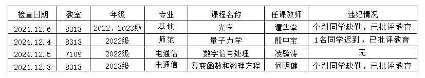 【学风建设】物理科学与技术学院本科生学风检查通报(2024-2025学年第1学期第14周)