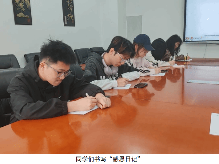 班会在一段有关 “感恩日记” 的温馨短片中拉开帷幕。它介绍了通过记录感恩小事来调节情绪、充实精神生活的方法。观看结束,同学们在班长的组织下,拿起信纸写下近几日让自己心怀感恩的五件小事。不少同学表示,在书写过程中,那些被忽略的温暖瞬间涌上心头,内心也被幸福填满,“感恩日记” 也成为了大家眼中调节情绪的 “宝藏方法”。