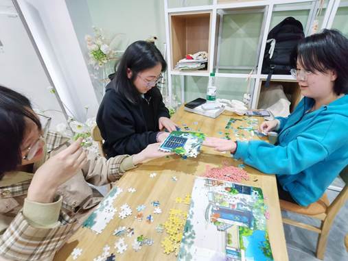 最后,大家围坐一起分享此次活动的心得。东一505寝室的代表余启菲同学表示:“我们在游戏过程中都很投入。在日常的快节奏生活里,我周末常常会不自觉地拿起手机,但这次拼图的全程很沉浸,没有想过拿起电子产品。这次活动也让我们寝室关系更温馨了。”