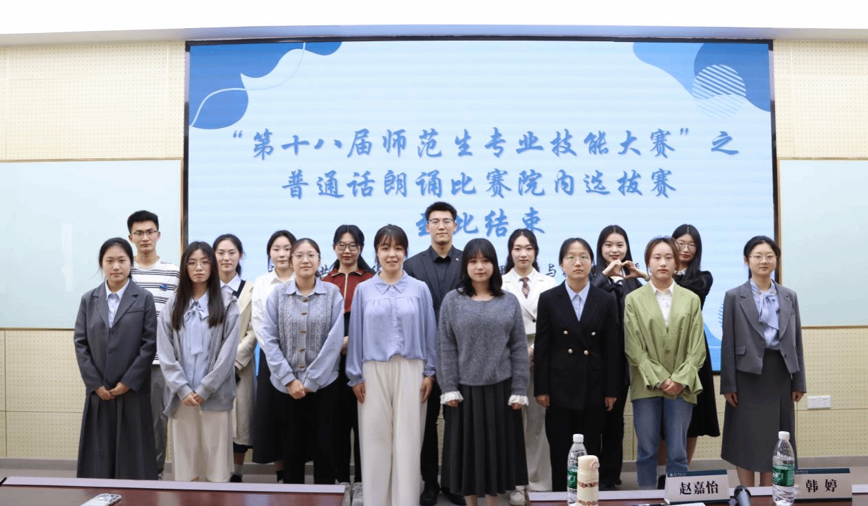 为提高师范生语言表达能力,引领师范生共览经典,传承优秀传统文化,学院举行了“第十八届师范生专业技能大赛”之普通话朗诵比赛院内选拔赛,本次比赛于4月12日在9号楼9557报告厅正式举行。赵嘉怡、韩婷作为评委出席比赛。