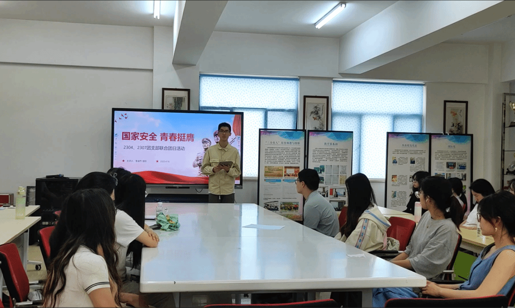 国家安全是安邦定国的基石,青年挺膺是民族复兴的脊梁。4月16日,2304、2307团支部在9551教室联合举办“国家安全,青春挺膺”主题团日活动,以沉浸式教育引导师范生筑牢国家安全意识。
