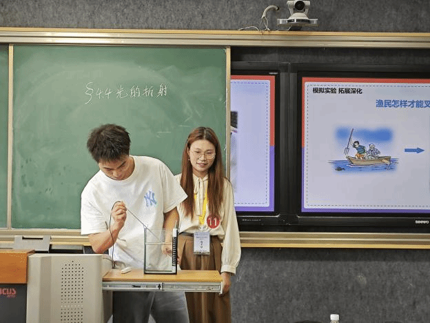 比赛中,选手们深入初高中各版本物理教材中的重要课题进行钻研,运用自制教具、混合式教学模式(PBL/HPS/探究式)及数字化实验视频,将抽象的物理概念转化为生动情境,充分体现了以学生为中心的教育理念,得到了评委们的一致肯定,体现出了我院研究生扎实的教学基本功。