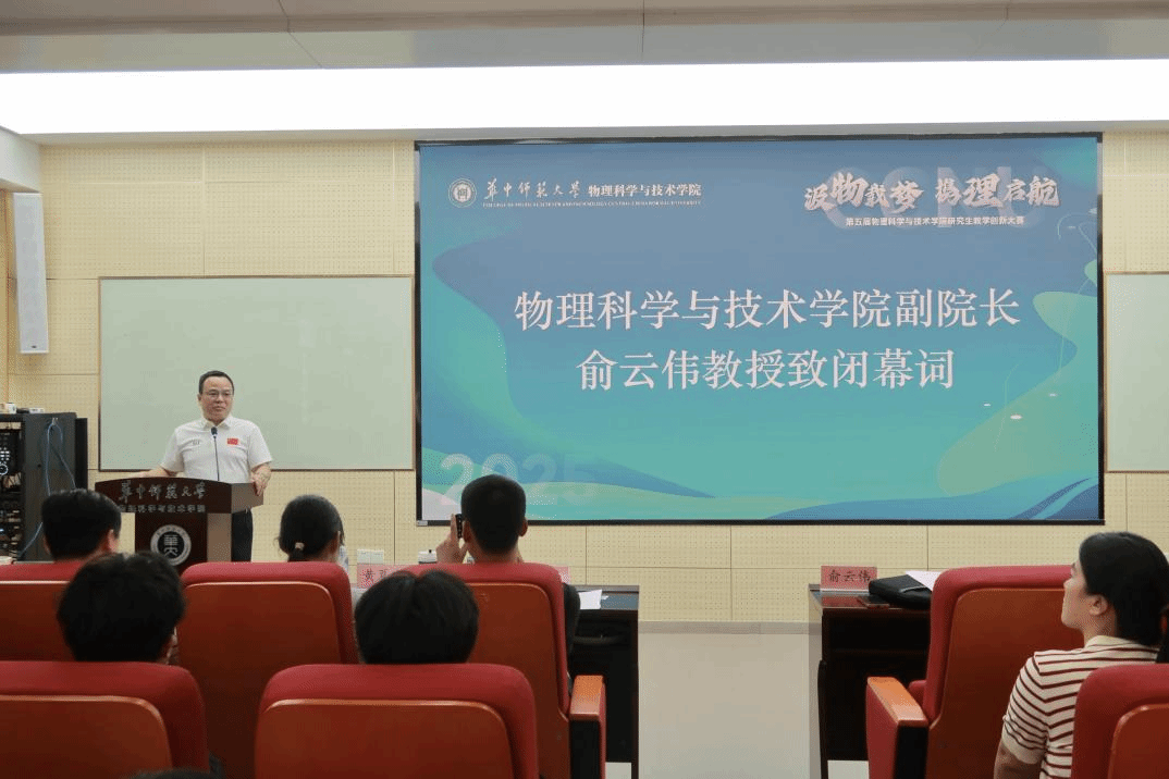 6月15日,学院第五届“汲物载梦·携理启航”研究生教学创新大赛成功举办。大赛邀请到武汉市第一中学物理教师张旭、武钢三中物理教师黄文、华中师大一附中物理教师吴明海等11位一线物理教师担任评委。学院院长秦广友、副院长俞云伟、物理教育研究所所长冯秀梅、物理学院郭庆老师、研究生辅导员王秋革老师出席本次大赛。大赛开、闭幕式由研究生兼职辅导员苗婕妤主持。