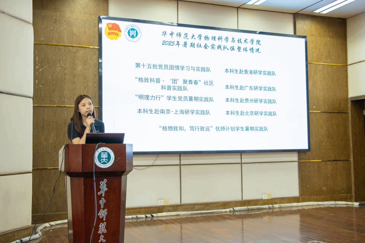 6月23日下午,物理科学与技术学院2025年暑期社会实践出征仪式在九号楼一楼报告厅举行。学校党委学生工作部副部长、事务处处长杨军,学院党委书记金新利、党委副书记马英,各实践队带队老师及队员参与仪式,仪式由团委书记舒佳欣主持。