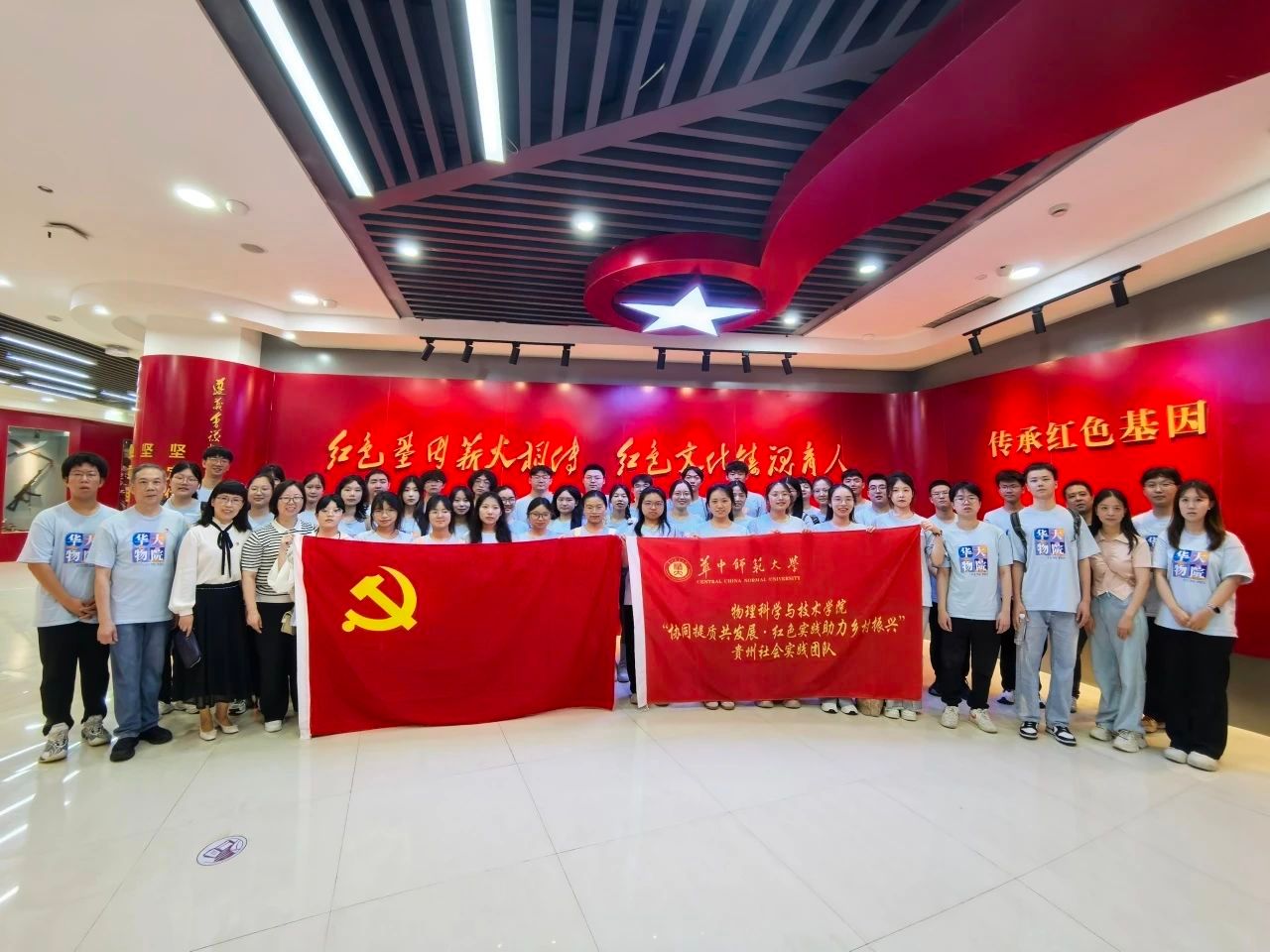 贵州实践队师生参观了遵义师范学院校史馆与红色文化馆。在馆内,大家沿着清晰的校史脉络,透过鲜活的校友事迹,深刻感悟师范教育与红色基因的深度融合,进一步强化了爱国情怀与责任担当。参观结束后,实践队全体党员与遵师物电学院教师党员代表共同重温入党誓词,铿锵誓言中,每一位党员更加坚定了铭记初心、践行使命的信念。