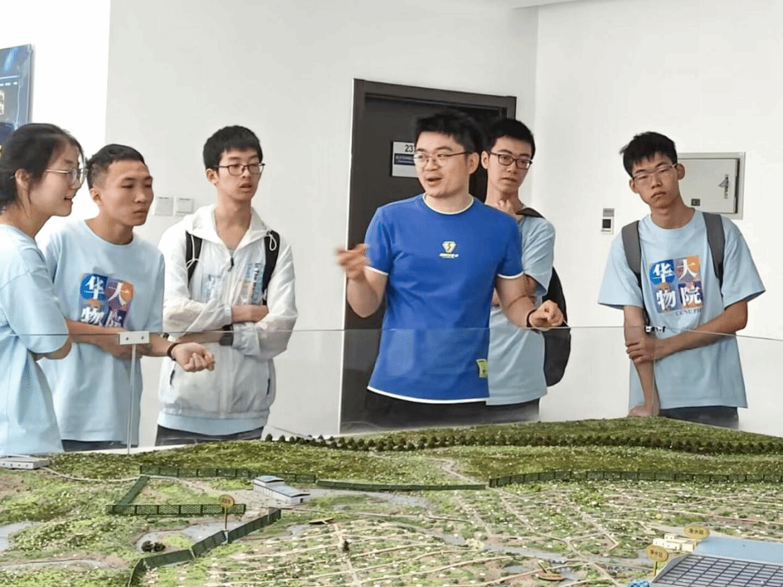 接着,队员们来到高海拔宇宙线观测站(LASSHO)模型前,聆听李骢老师对LHAASO观测基地的详细介绍,包括其结构组成、探测器特点、科学目标及已取得的相关成果等内容。在这个过程中,队员们也与李骢老师就LHAASO观测基地展开了深入的探讨。思维碰撞间迸发出创新火花,队员们也对LHAASO观测基地的建设、宇宙线探测原理和LASSHO的物理目标有了更深的理解。